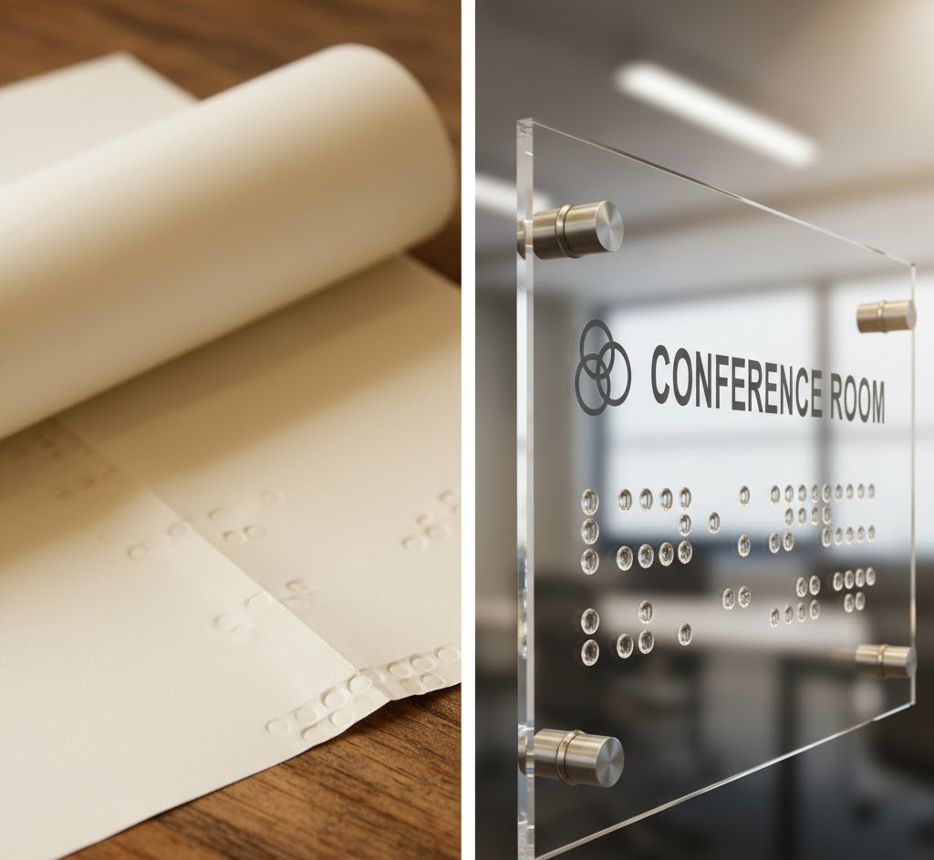 Clients today don't want a clunky, separate braille plaque. They want seamless, branded signs that blend visual design with tactile compliance—signs that fit into retail spaces, offices, or public buildings without looking like an afterthought.