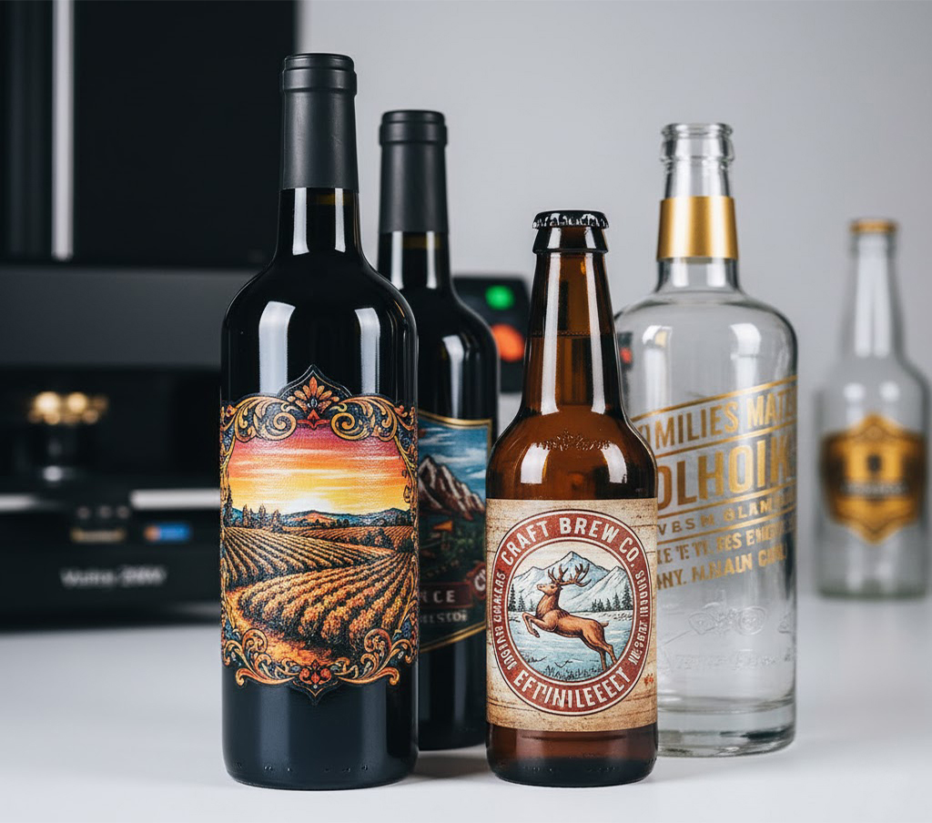 Glass bottles hold a significant position in high-end alcoholic beverages, particularly wine, spirits, and premium beer. More and more brands are turning to customized packaging to add value and enhance their brand image. UV printers can print exquisite brand logos, graphic designs, and labels on glass bottles, enhancing the packaging's visual appeal and brand recognition.