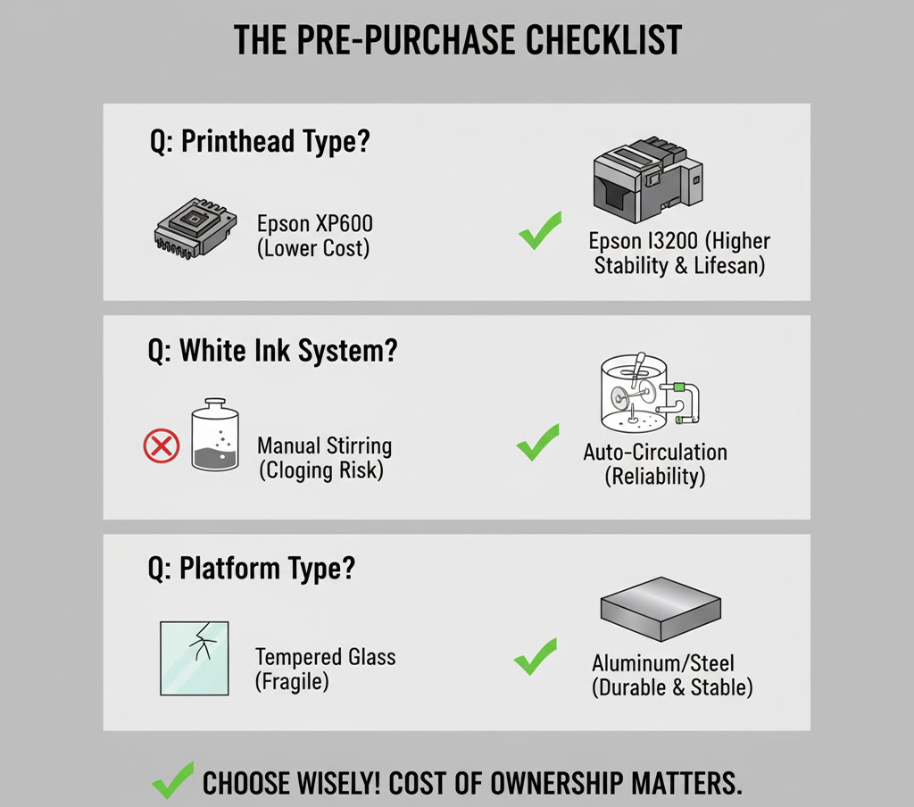 Our advice: Don't just ask about the "price" when looking at a flatbed printer for sale. Ask about the "cost of ownership." When you see a flatbed uv printer for sale that seems too cheap, remember that a machine that clogs twice a month will be more expensive in its first year than the most expensive uv flatbed printer on the market