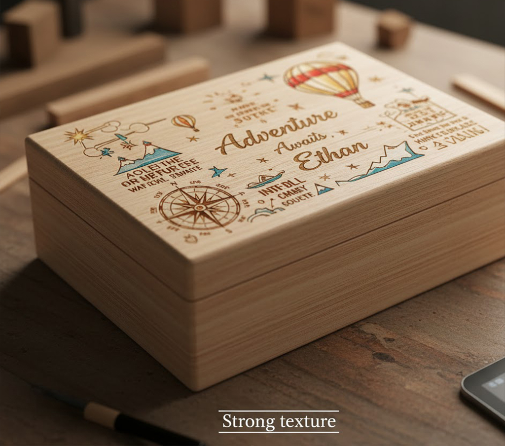 Rich, Textured Wood Prints: Print directly onto finished or unfinished wood. The uv flatbed printer ink instantly cures, preserving the wood's natural grain while adding tactile, full-color graphics.